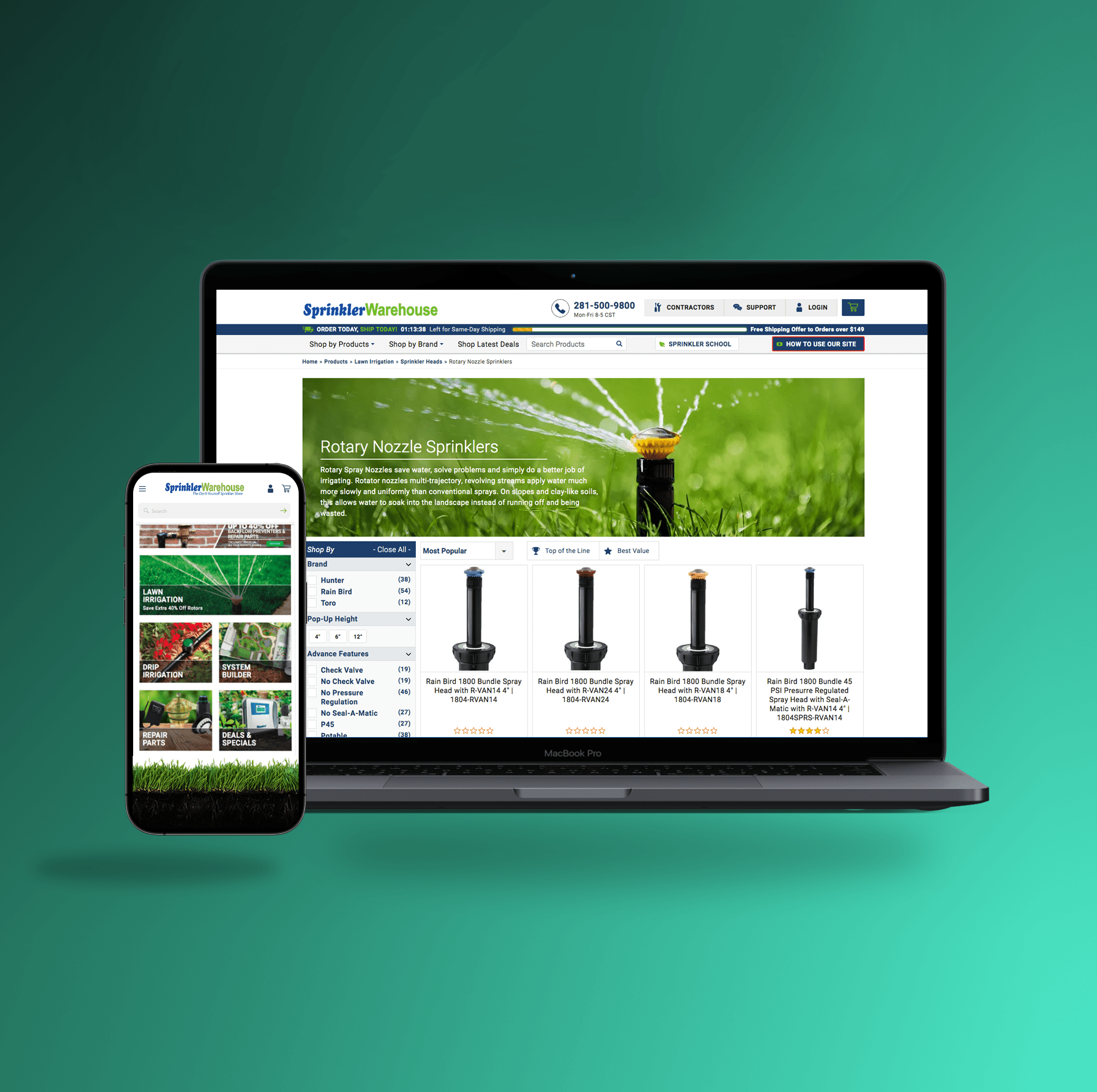 I implemented a mobile-first content strategy and I elevated Sprinkler Warehouse’s marketing with high-quality, professional, and relevant visual assets.